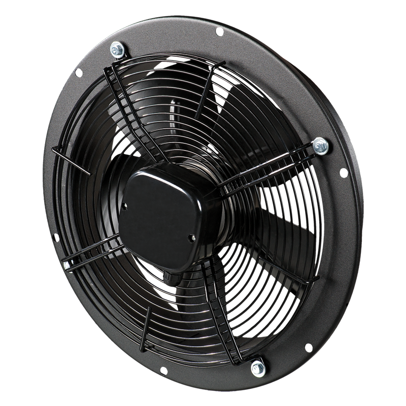 Осевые вентиляторы низкого давления в стальном корпусе производительностью до 25000 м³/ч для настенного монтажа.